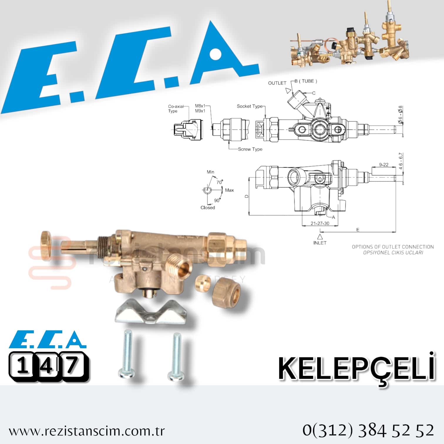 Kelepçeli Eca Gaz Muslugu 147 Magnet Kelepcelı ve Ventilli Musluk